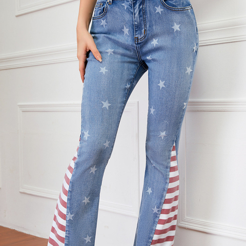 2022 Neueste Damen Jeans hose mit hoher Taille Blue Wax Stripe Womens Printed Flare Jeans