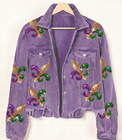 Damen lila Jacke Pailletten jacke Bestickter Druck Single-Button XL Atmungsaktiv für den Herbst